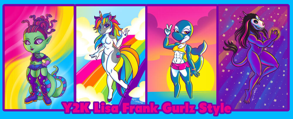 Full body single character art. Artistic liberty may be taken with character colors to stick to the rainbow palette aesthetic.